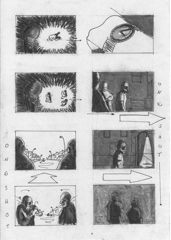Cinematography was inspired by the early films of Nicolas Winding Refn (Pusher trilogy): hand-held camera, never static, fast panning movements, ambient lights, ambient sounds and quick edits.
